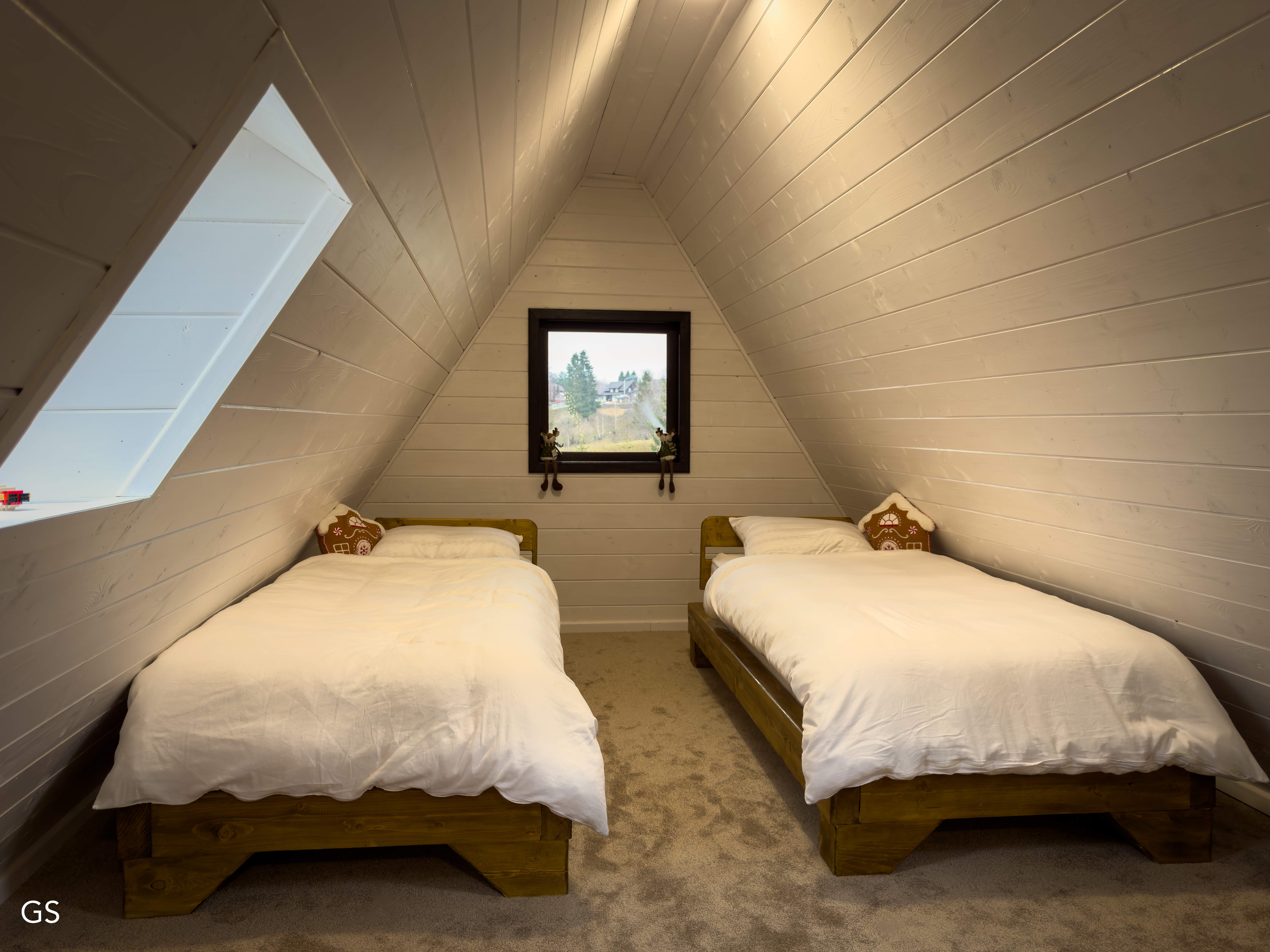 - 2 single beds in the loft and sofa bed in the living room